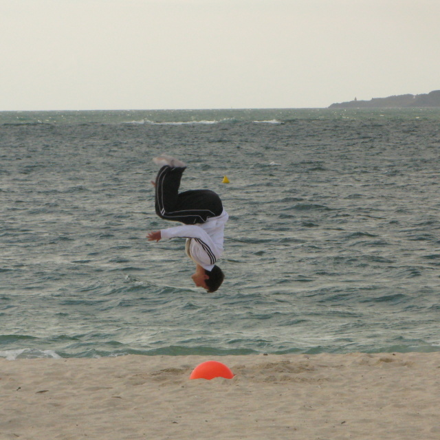 Hoy os desvelaré el misterio y la verdadera historia de la foto de ayer. Los chicos que veis en las fotos de hoy estaban en la playa enterrando una baliza que les servía como trampolín para realizar una estupendas acrobacias en la arena.