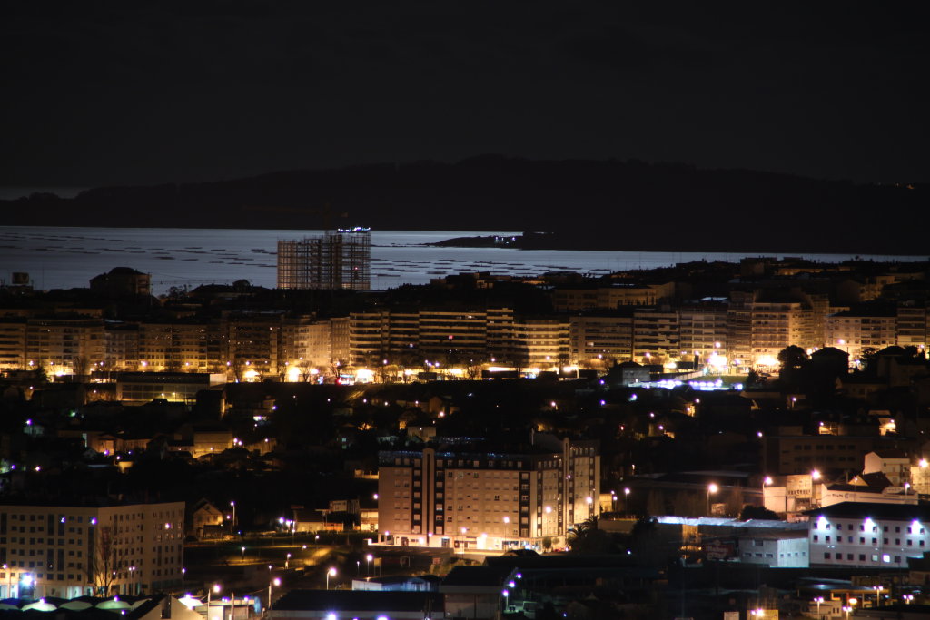 La foto está bien técnicamente. Has pillado las luces de la ciudad y la luz de luna en la ría, pero me habría gustado ver más a lo ancho. La foto por si misma habría ‘contado’ más historia. Una perspectiva angular o varias fotos juntas a 200mm abarcando al menos el campo de visión humano te habrían dado una composición más impactante.