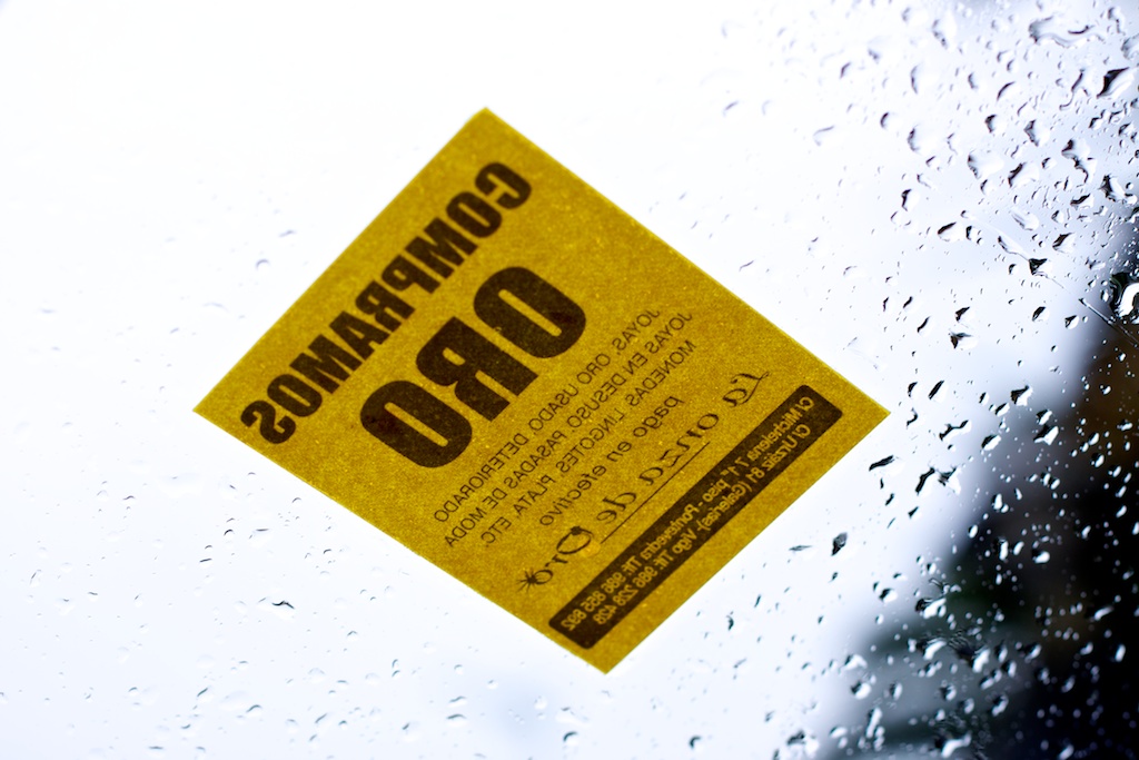 Hace unos días encontré en mi parabrisas un anuncio que rezaba tentador Compramos Oro, joyas, oro usado, deteriorado, joyas en desuso, pasadas de moda, monedas, lingotes, plata…