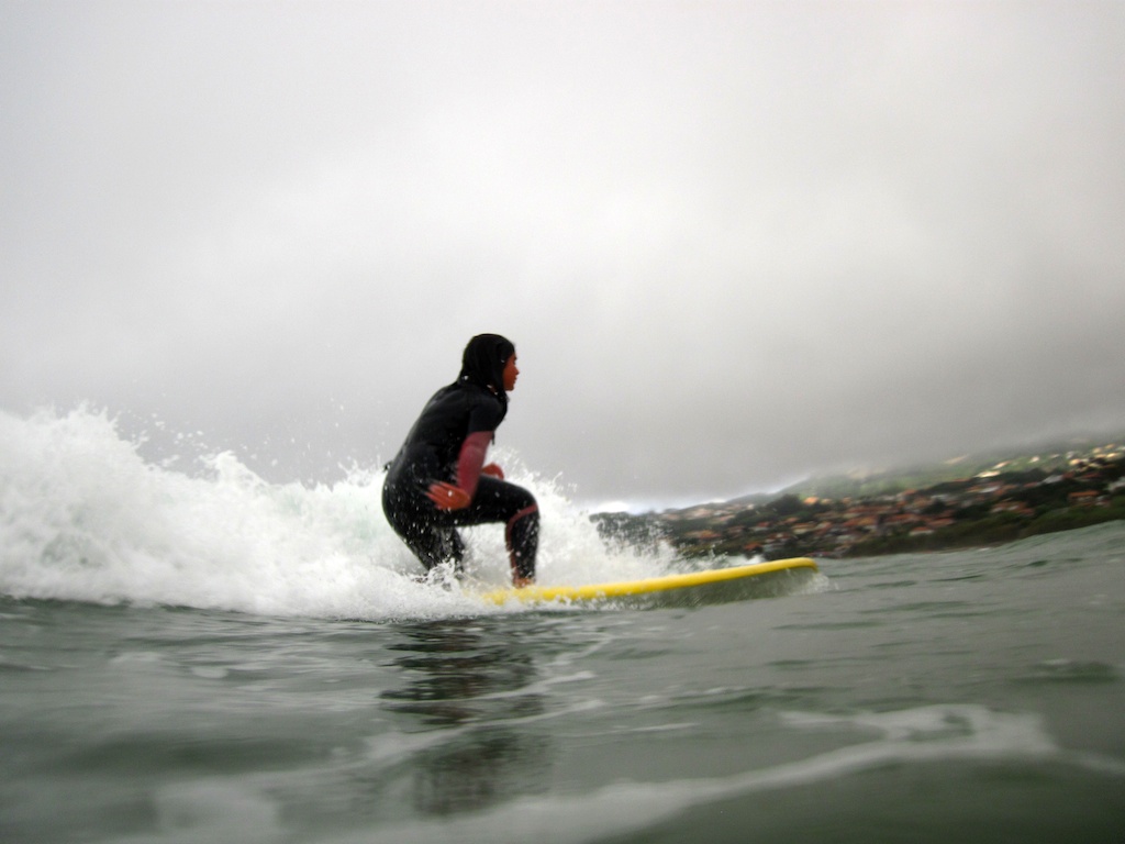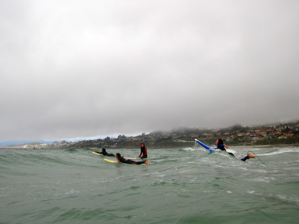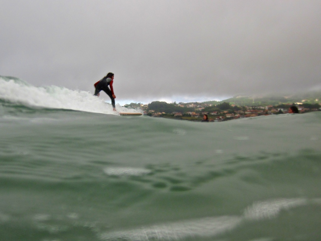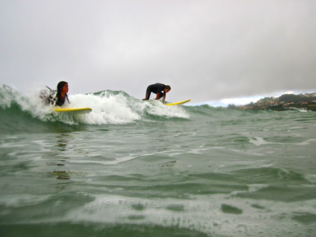 Aproveché la oportunidad para darme un baño cuando nadie estaba en el agua. Al poco aparecieron unas chicas surfistas tan concentradas en el mar que pude pasar desapercibido. Los robados no son mi estilo, pero mientras todos jugábamos con las olas, saqué la cámara de agua que siempre llevo encima en verano y ¡click, click, click!.