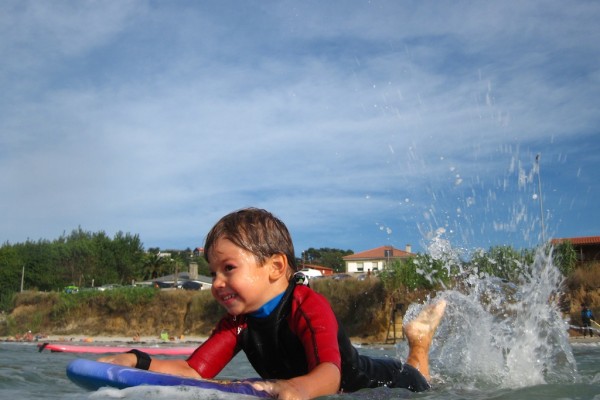 La segunda parte de nuestras vacaciones de verano nos hicimos asiduos a la playade Patos, en Nigrán. Allí pequeños y mayores disfrutan a todas horas de las olas con sus tablas de surf y bodyboard. Por supuesto, el pequeño Nicolás quiso emular a los mayores con su tabla de bodyboard.