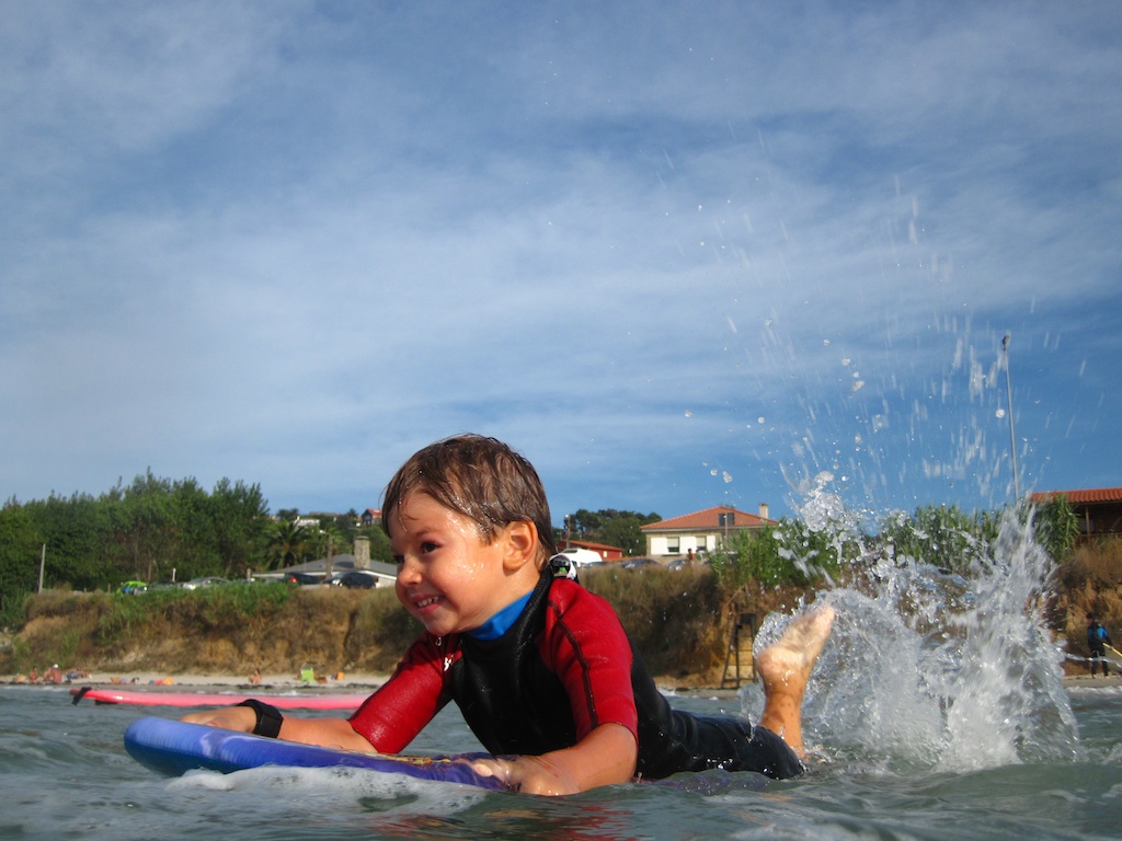 La segunda parte de nuestras vacaciones de verano nos hicimos asiduos a la playade Patos, en Nigrán. Allí pequeños y mayores disfrutan a todas horas de las olas con sus tablas de surf y bodyboard. Por supuesto, el pequeño Nicolás quiso emular a los mayores con su tabla de bodyboard.