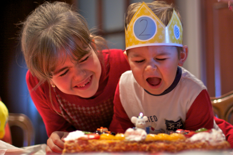 Hoy de nuevo Nicolás sopló una vela con su prima Paula. Le encanta soplar las velas. No hay más que contemplar sus ojos.