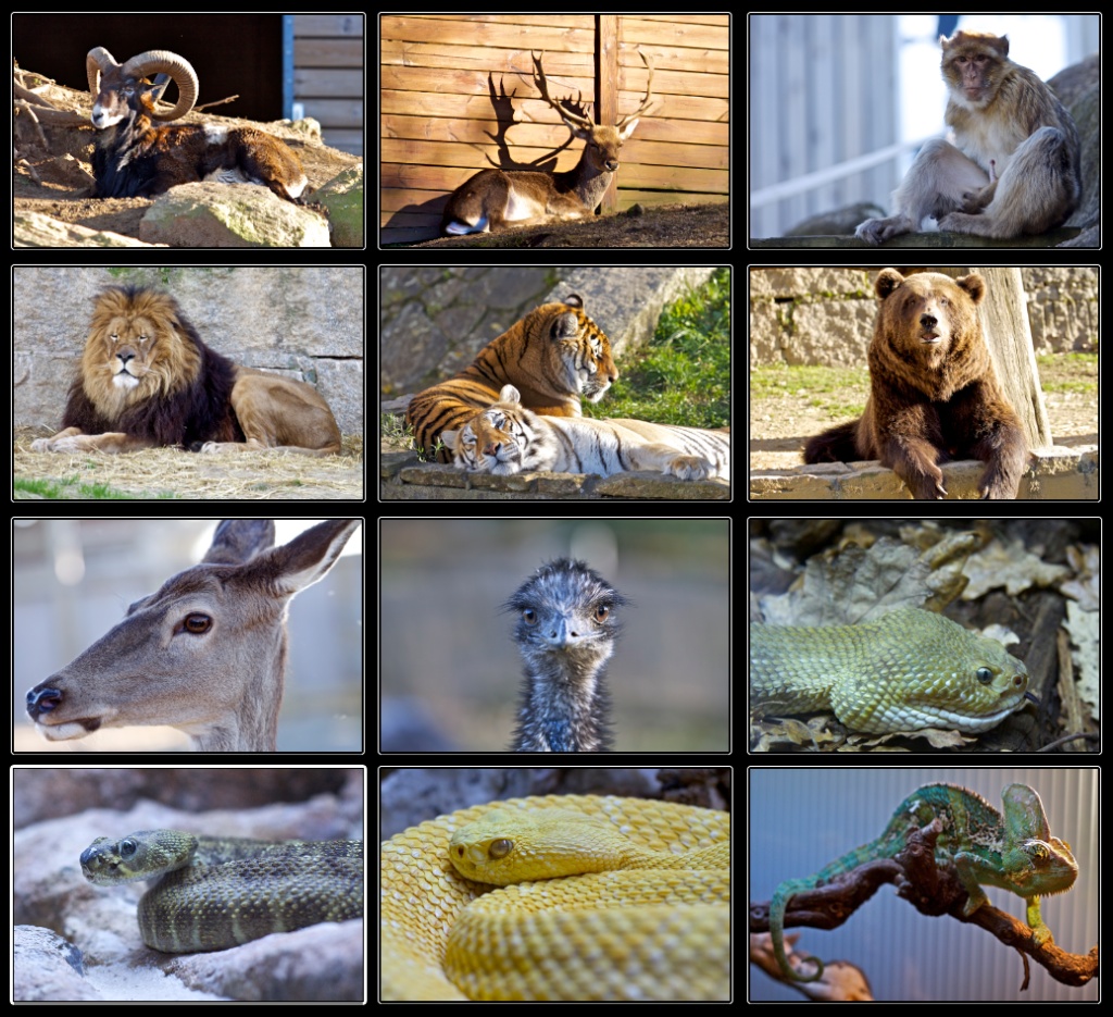 Me gusta mucho la presentación que has hecho de las fotos tomadas en el zoo. Particularmente me encantan las fotos de las serpientes (¡y eso que me dan un repelus!). Tienen mucho color y se aprecia hasta la textura de su piel, parece que casi las puedes tocar, ¿las hiciste con el 70-200?