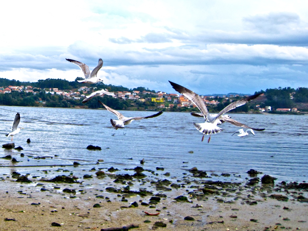 El peque y yo paseamos por la playa. Arrojando palos al mar y dando patadas a los restos de la tormenta. Entonces nos vamos acercando poco a poco. Caminando quedo. Como si nada. Haciendo que miramos para otro sitio, pero viendo muy atentos de reojo. Ellas tampoco nos pierden de vista.