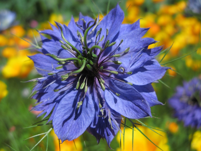 Nunca sabes dónde puede estar peligro. Esta mañana me enfrenté con una flor azul de temibles estambres cuan cabezas de Hydra.