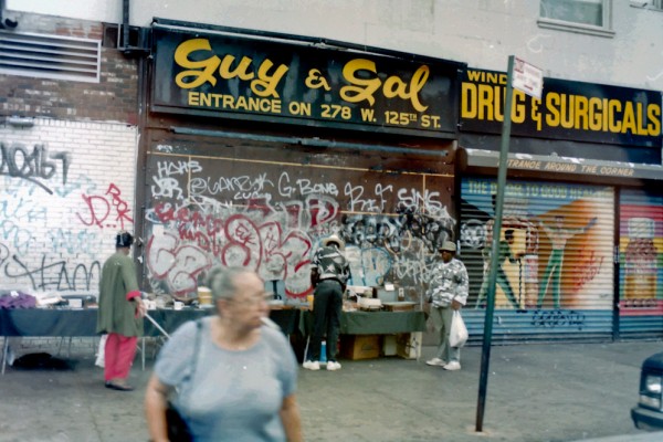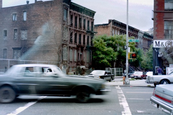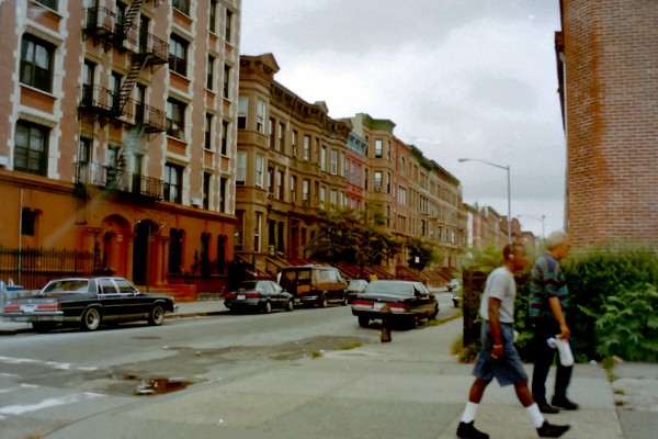 Esta foto está tomada desde una furgoneta en esa misma Avenida Lenox hace ya algo más de 17 años, era el verano de 1993, y los amables chicos que se ven al fondo -sentados a la puerta de la barbería- no vendían caramelos. Por eso no era muy recomendable bajarse del coche para mejorar el encuadre.