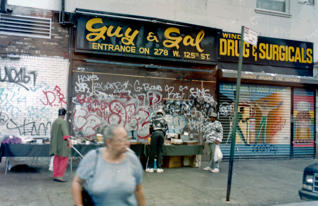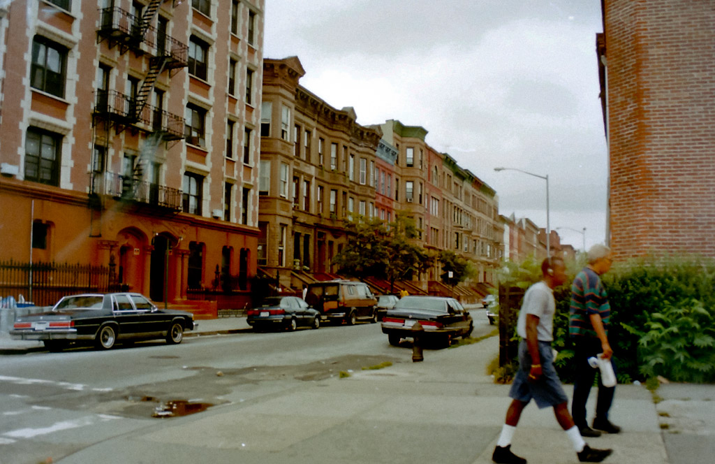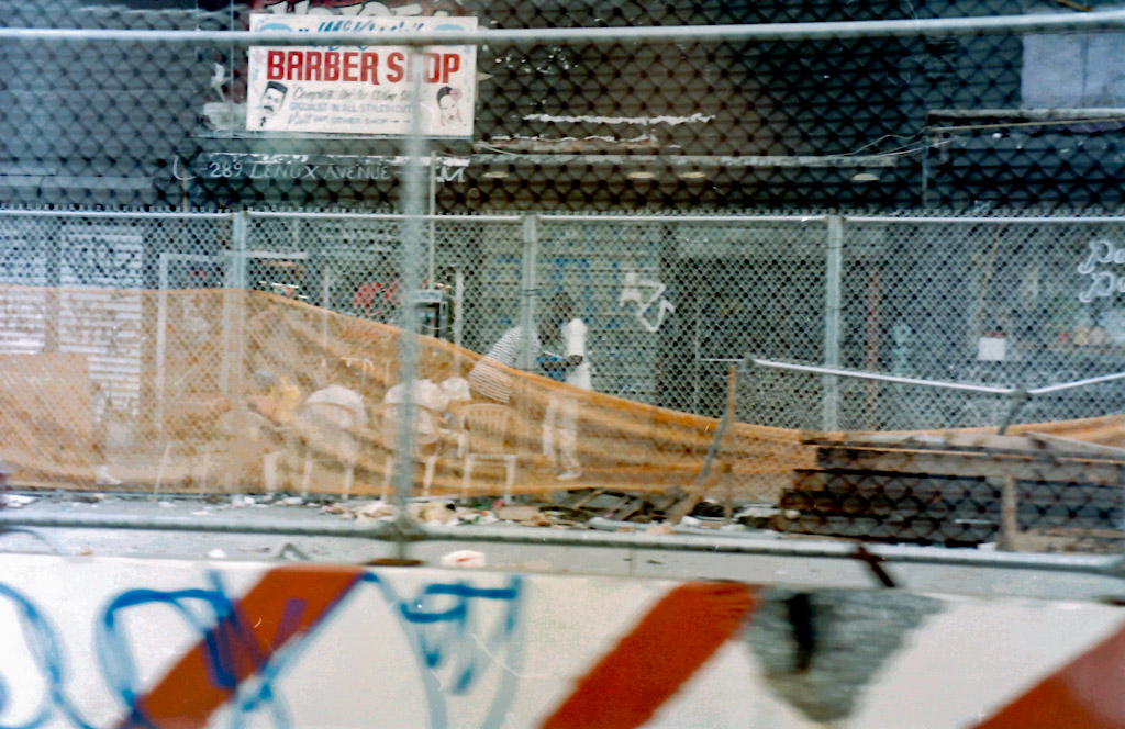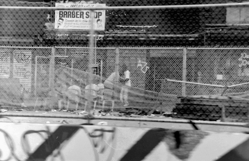 Esta foto está tomada desde una furgoneta en esa misma Avenida Lenox hace ya algo más de 17 años, era el verano de 1993, y los amables chicos que se ven al fondo -sentados a la puerta de la barbería- no vendían caramelos. Por eso no era muy recomendable bajarse del coche para mejorar el encuadre.