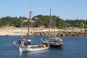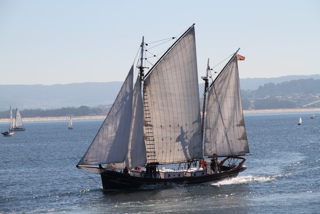 Participaron unas 25 embarcaciones tradicionales (dornas, racús, galeones, etc.) , pero incomprensiblemente (al menos para un lego como yo) el Evangelina que podéis ver en la foto y que impresionaba a todos los que fuimos a ver el espectáculo se quedó sin premio alguno.