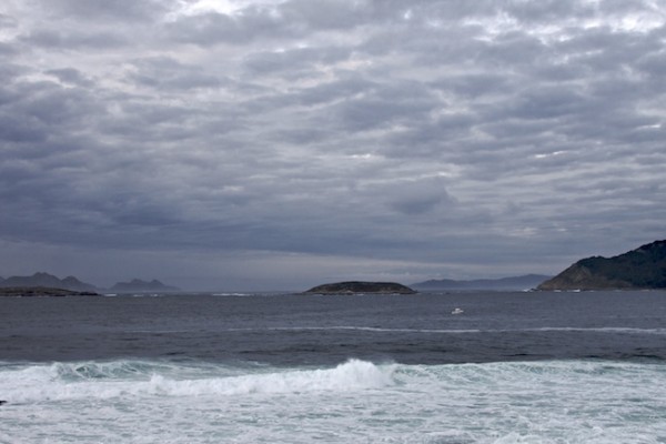 Contemplar las Islas Cíes desde Baiona es todo un espectáculo: el océano de olas furiosas, miles de gaviotas, las Islas Estelas y Monte Ferro cerrando la panorámica.