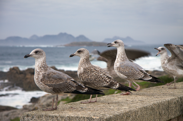 Contemplar las Islas Cíes desde Baiona es todo un espectáculo: el océano de olas furiosas, miles de gaviotas, las Islas Estelas y Monte Ferro cerrando la panorámica.