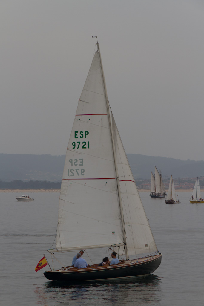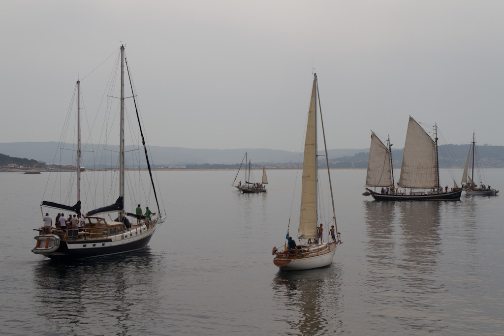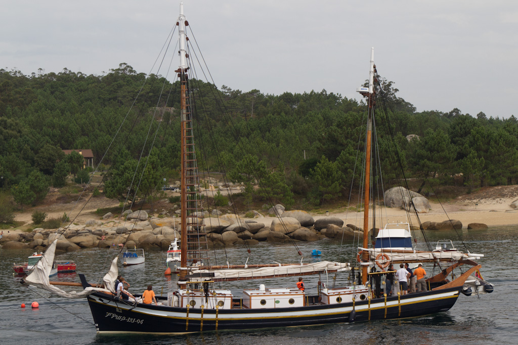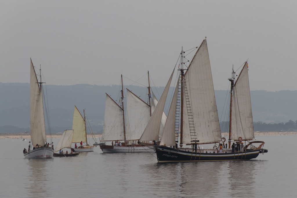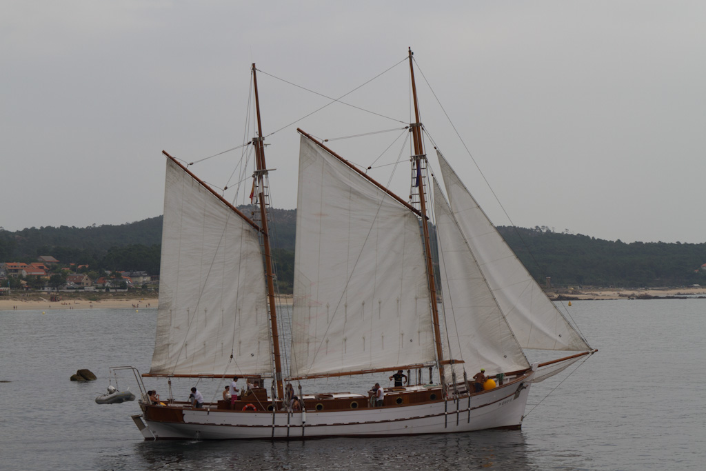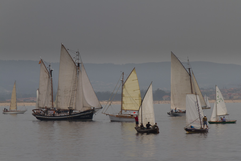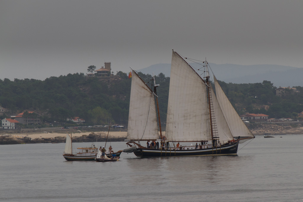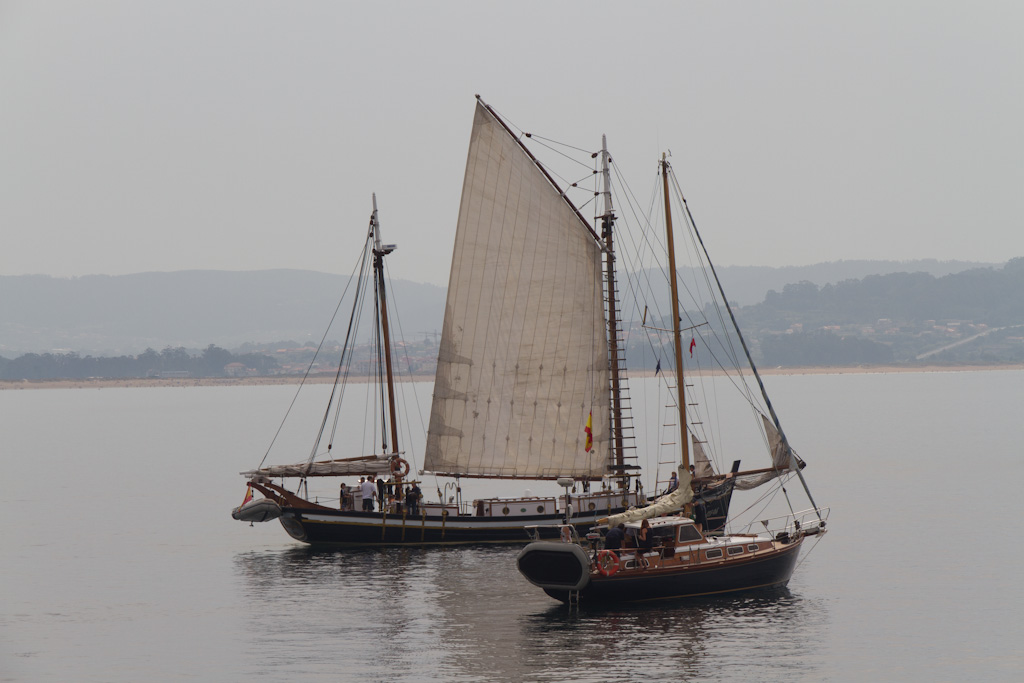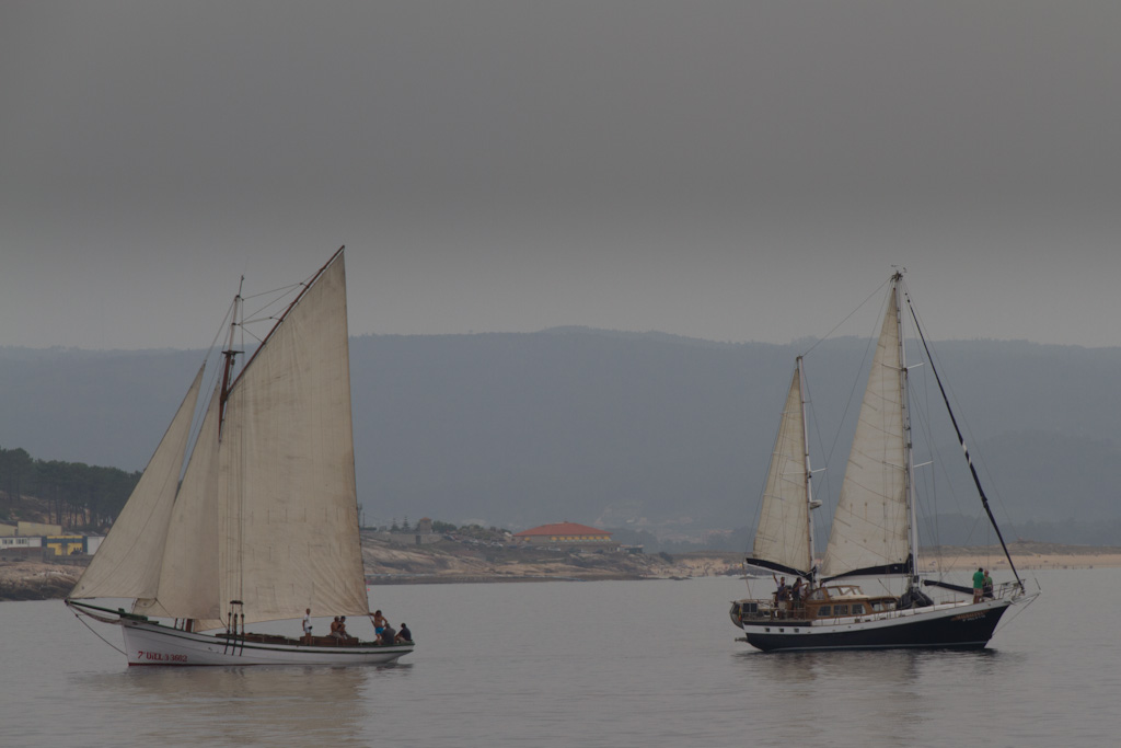 Todas las fotos corresponden a la Regata de la IV Concentración de Barcos Clásicos y de Epoca -el año pasado se celebró la III edición– organizada por el Club Náutico San Vicente do Mar en Pedras Negras. Ese día -domingo, 21 de agosto- estaba nublado, con neblina y sin viento… vamos, lo ideal para regatear y también para hacer fotos.