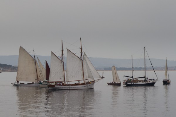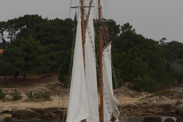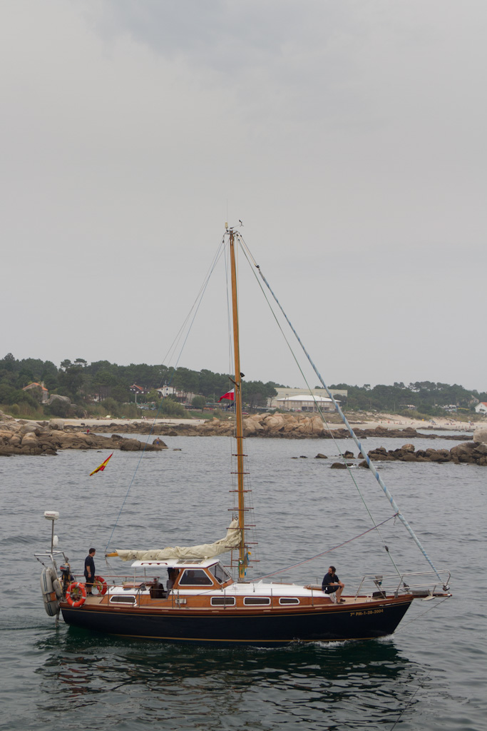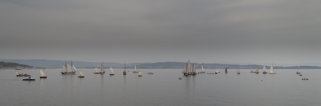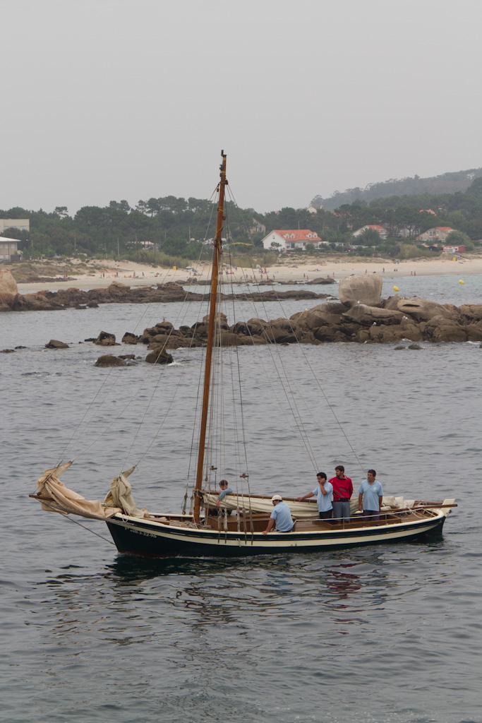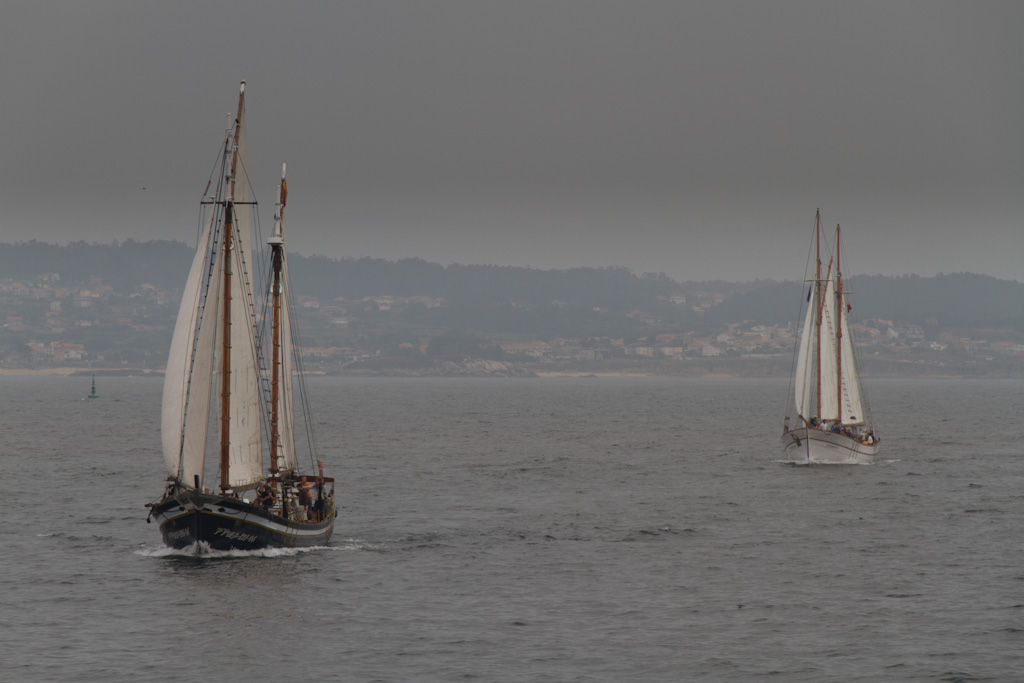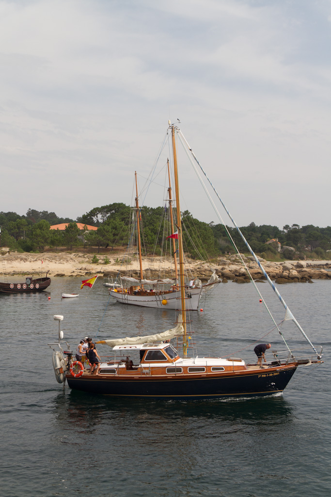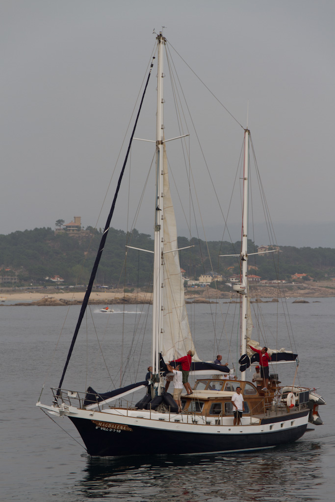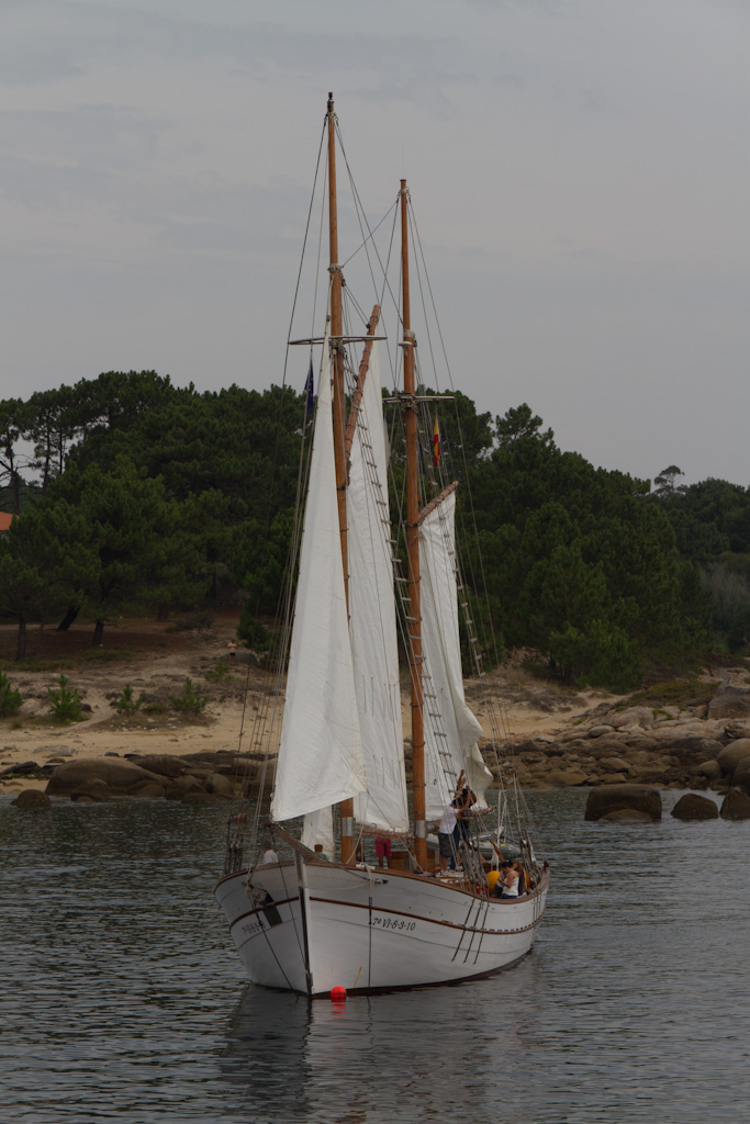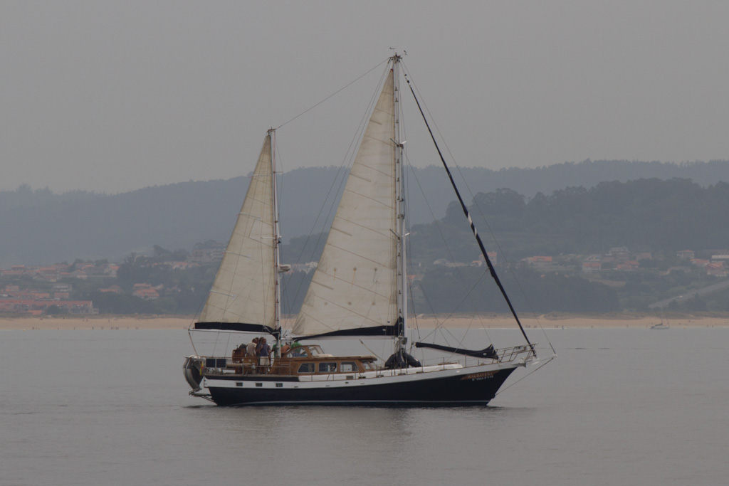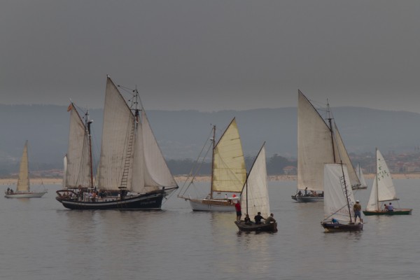 Todas las fotos corresponden a la Regata de la IV Concentración de Barcos Clásicos y de Epoca -el año pasado se celebró la III edición– organizada por el Club Náutico San Vicente do Mar en Pedras Negras. Ese día -domingo, 21 de agosto- estaba nublado, con neblina y sin viento… vamos, lo ideal para regatear y también para hacer fotos.