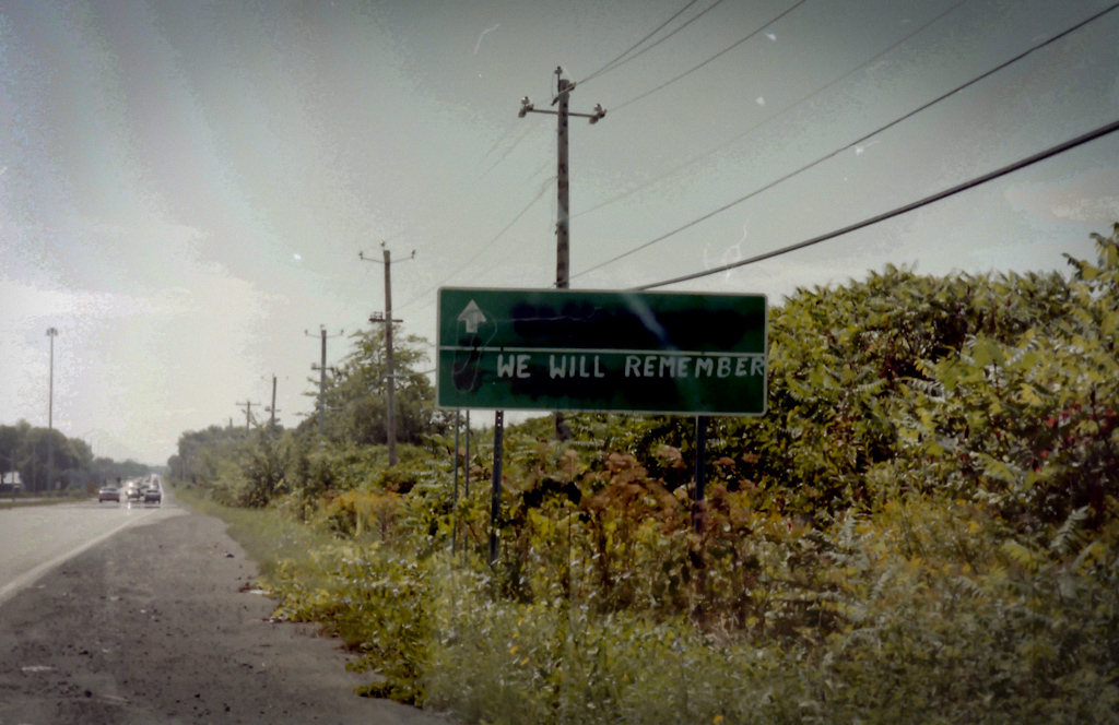 Tres años después todavía quedaban señales de la trifulca. El grafiti «we will remember» tiene muchas connotaciones, ya que hace un guiño al lema de la provincia de Québec -que es francófona- cuyo lema es «je me souviens» . Los Mohawks dicen RECORDAREMOS (en inglés) donde los quebecoises dicen RECUERDO (en francés).