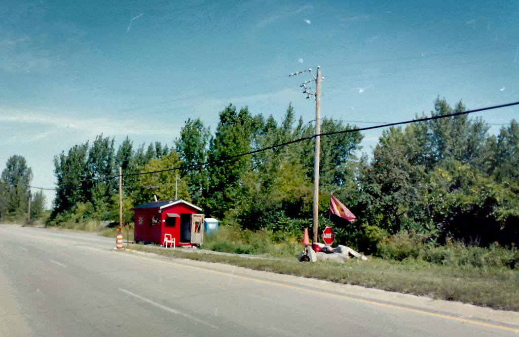 Las fotos fueron tomadas en 1993, pero la visita a esta comunidad india de Mohawks de Kahnawake la hice movido por la curiosidad a raiz del levantamiento de primavera-verano de 1990 que, aunque tuvo muy poca repercusión en los medios españoles, probablemente alguno todavía recordareis las fotos de los indios -o nativos americanos, como ellos prefieren que les llamen- por los bosques con sus M-16, AK-47 y otras armas.