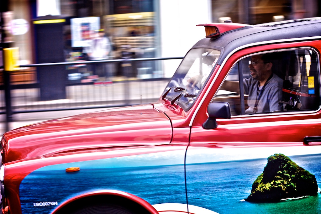 Según dicen, ser taxista en Londres es una prueba difícil para mentes despejadas y aun así los taxis son extremadamente abundantes en el centro de Londres. Sin embargo, lo que más me sorprendió fue su original adaptación a los tiempos modernos con sus serigrafías publicitarias de motivos infinitos.