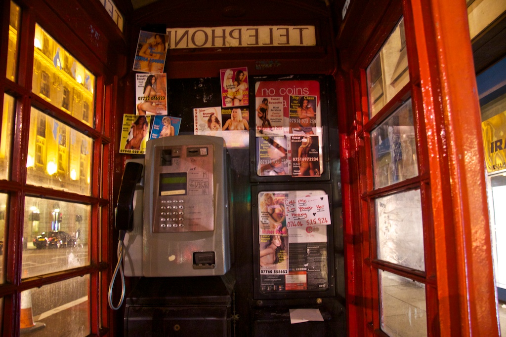 Os dejo las fotos con la prueba del delito en las cabinas del sexo londinenses de Times Square y Broadway. Una escena típica de Londres muy poco conocida.