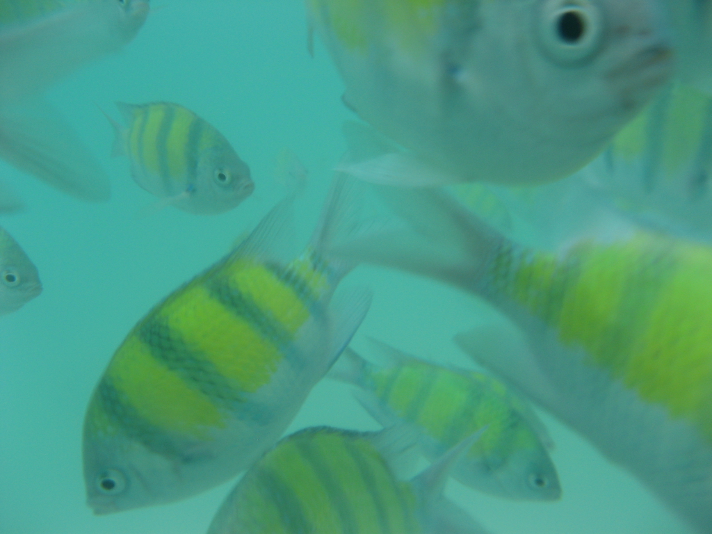 yo me sumergí en un arrecife de un cayo de Cuba en el Mar Caribe y es lo que tú dices: millares de peces de colores se acercan a ti a curiosear y ver si le das algo de comer. Es como estar dentro de un acuario. ¿Cómo hiciste las fotos bajo el agua?