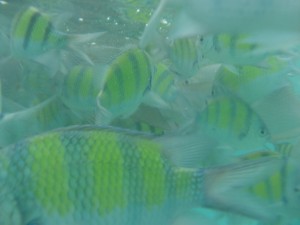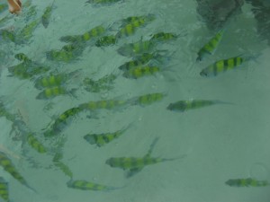 Pero lo mejor viene cuando te metes al agua pasados unos 20 segundos te das cuenta de que a poco metros de la orilla estas rodeado de peces por todos lados la verdad es algo alucinante, son tantos que metes la mano al agua y casi que los puedes tocar y además si llevas contigo una rebanada de pan y la introduces un poco en el agua podrás presenciar como vienen a por ti un batallón de peces.