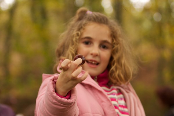 Poca luz y mucha apertura, lo que se traduce en poca profundidad de campo así que o le saco a las castañas o a los niños.