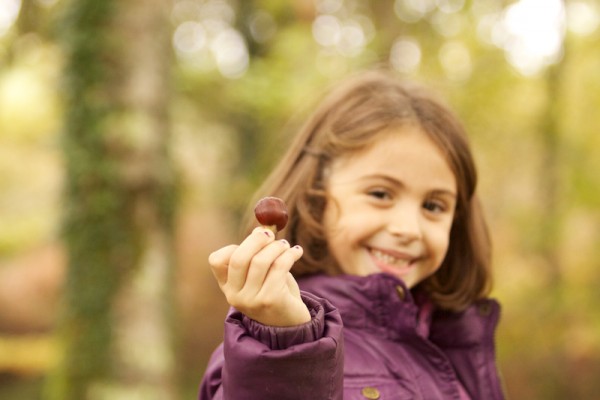 Me gusta su espontaneidad, el color rojo sobre los tonos ocres y verdes del bosque y, sobre todo, esa sonrisa que dedican al fotógrafo enseñando el tesoro encontrado.