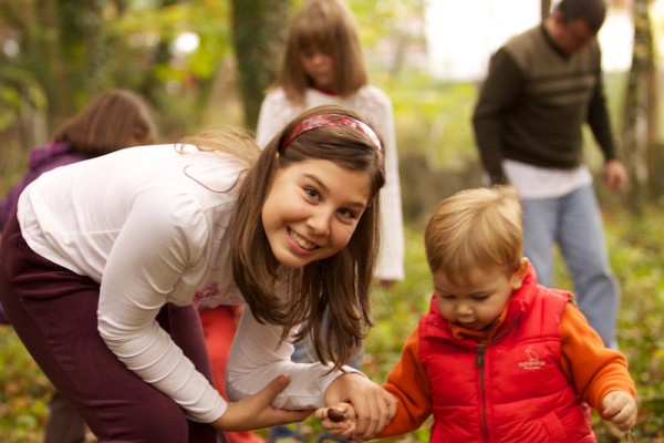 La combinación perfecta: esos verdes y esas hojas son un fondo ideal para retratos. Y todo lo que sea mancharse es genial para los niños.