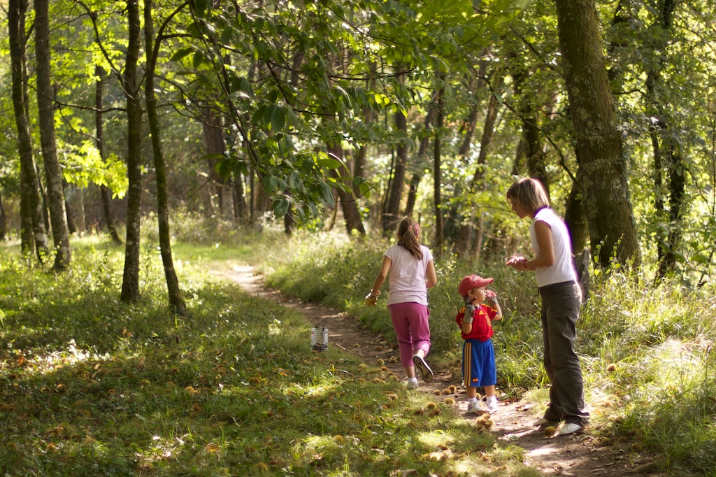 De vez en cuando el viento agitaba las ramas. Entonces llovían erizos maduros y preñados de castañas. Nosotros, al grito de -¡A cubierto! intentábamos protegernos de los inesperados proyectiles cubriéndonos con los brazos.