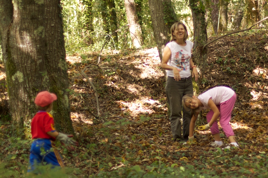 La cosecha nos regaló unas hermosas castañas y muchas, pero que muchas risas. Sobre todo cuando agachados para la foto de grupo, el pequeño nicolás gritó -¡Ay, que me pincho el culo!.. Yo apreté el disparador mientras la prima Paupau se tronchaba de la risa.
