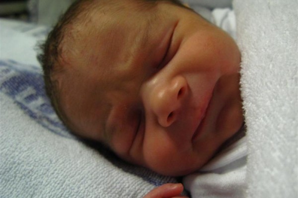 Que cosa más linda de niño, que sorpresa verle por aquí tan temprano ¿Solo tenía una horita de vida? Debió ser un parto «tranquilito» porque no parece muy compungido. Me encanta, es lindísimo. De nuevo, muchas felicidades. Un beso enorme a los tres