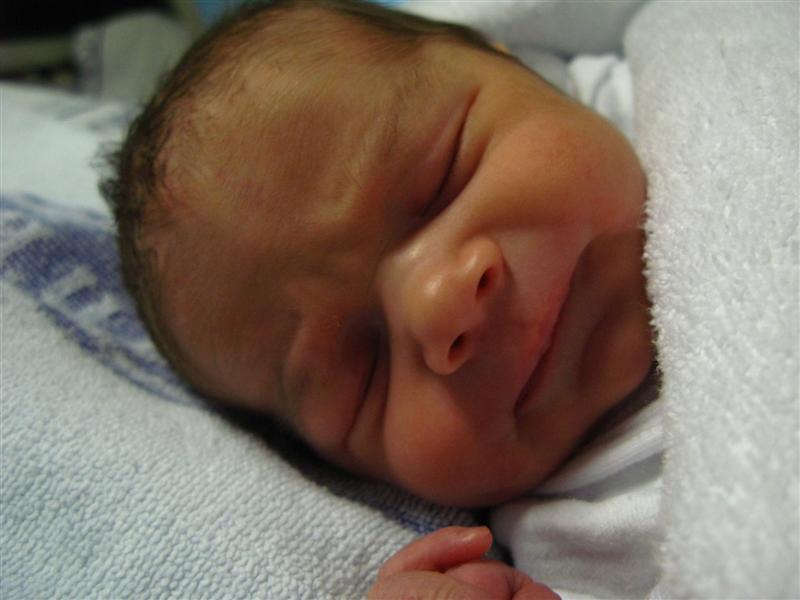 Que cosa más linda de niño, que sorpresa verle por aquí tan temprano ¿Solo tenía una horita de vida? Debió ser un parto «tranquilito» porque no parece muy compungido. Me encanta, es lindísimo. De nuevo, muchas felicidades. Un beso enorme a los tres