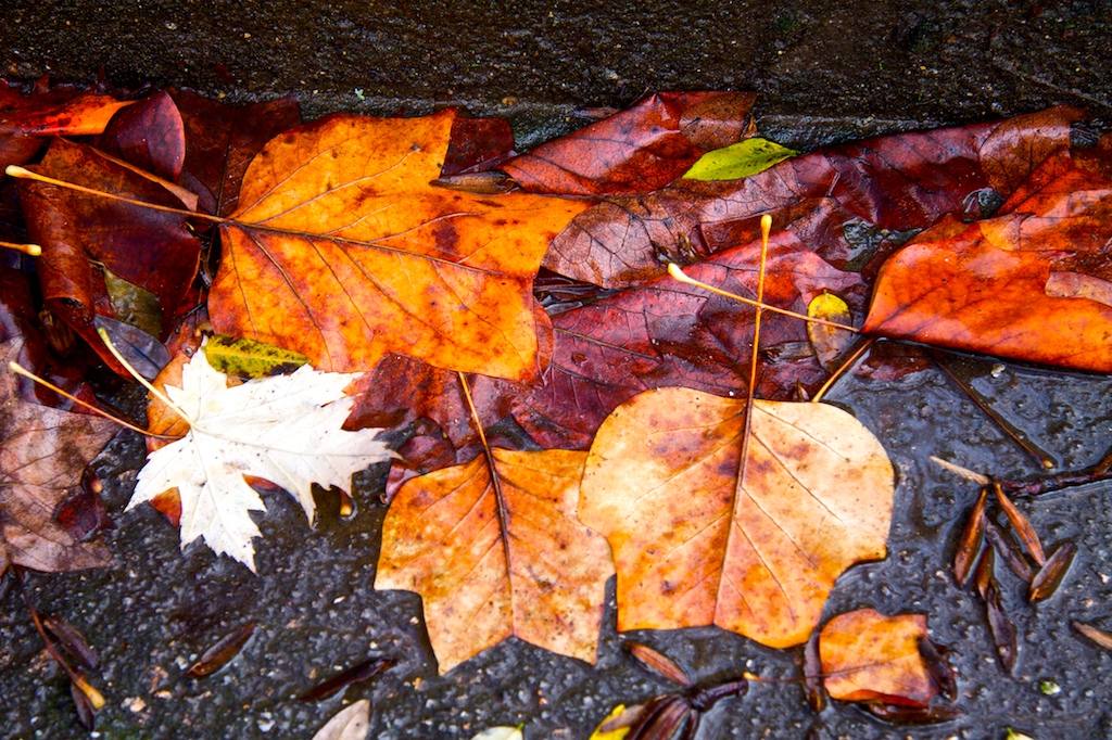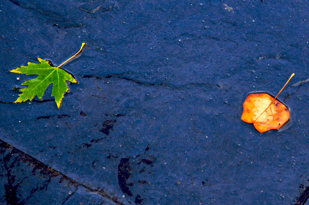 La verdad es que las hojas sobre el suelo de pizarra llamaban mucho la atención, y jugando con contraste y saturación he conseguido darle una fuerza especial a estas fotos tomadas un día completamente gris. Espero que os gusten.