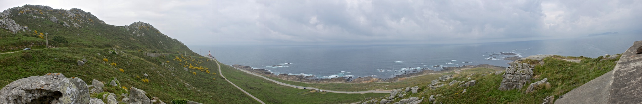 Panorámica de la costa de Oia y espectacular vista del faro de Cabo Silleiro tomada desde las privilegiadas ruinas de la batería de costa. Un día de estos intentaremos de nuevo una toma del mismo faro faro por la noche.