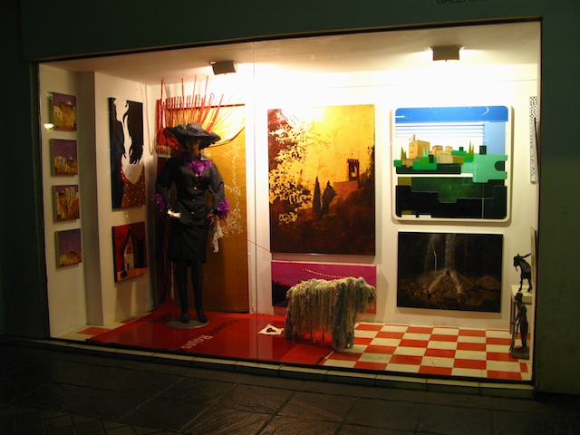 No soy especialmente aficionado al arte, pero a veces me aflora un poco la sensibilidad artística y entonces me llaman la atención estas cosas. Aquí la foto del escaparate completo: