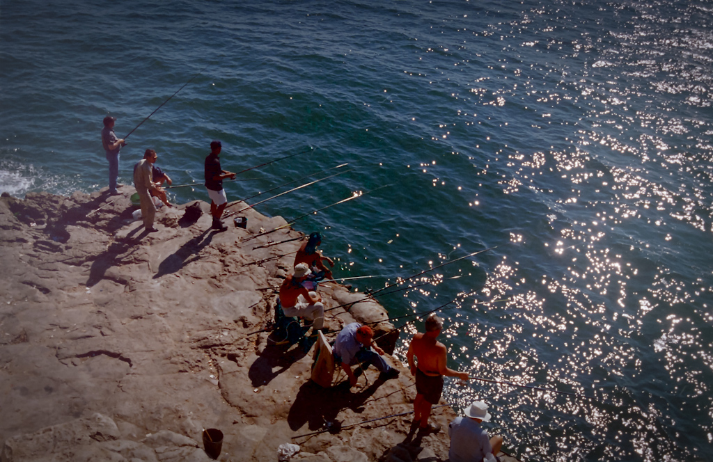 A Boca do Inferno es una curiosa e impresionante formación geológica que se encuentra en Cascais (Portugal). Estos pescadores no estaban justo en la Boca do Inferno -que se puede apreciar en la siguiente foto- pero si muy cerca.