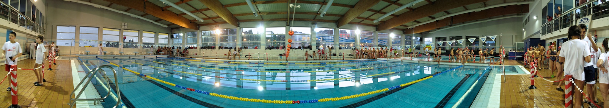 Huyendo del incalificalble acristalamiento de la grada en la Piscina Municipal de Ponteareas, os propongo una panorámica alternativa desde la orilla de la bancada. Comparadla con la anterior.