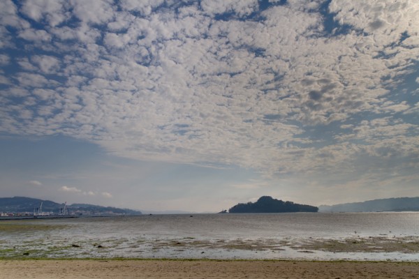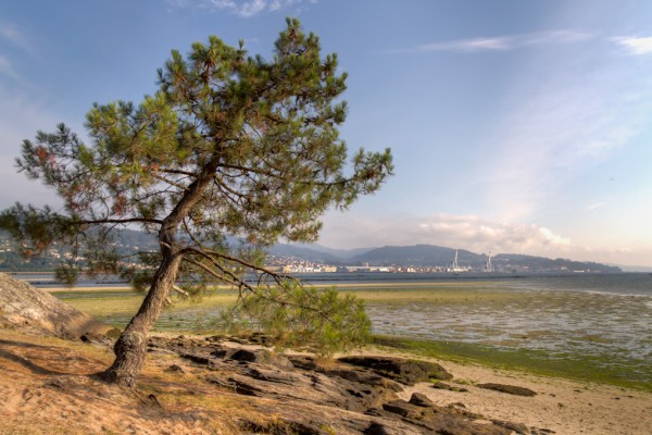 La foto fue tomada desde Lourido (Poio) y recurriendo al HDR (tres exposiciónes con +/- 2 EV). Las otras dos fotos -tomadas desde Playa Cabeceira- muestran la isla de Tambo y algo más del entorno y también son HDR realizadas en las mismas condiciones.