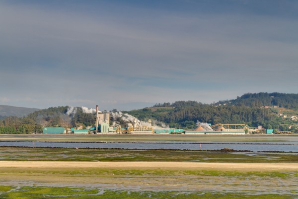 La planta industrial de la foto es la fábrica de pasta de papel (celulosa) de Pontevedra, propiedad de ENCE y bestia negra de la Asociación Pola Defensa da Ría además de muchos otros grupos que llevan años guerreando contra ella. Está situada en Lourizán y ocupa algo más de 450.000 metros cuadrados.