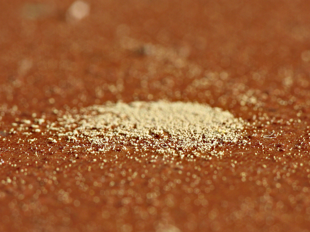 Hace un par de semanas mi terraza estaba salpicada de trazas amarillas de polen como la de la foto. Los cristales completamente amarillos. Y el coche que duerme fuera había cambiado de color.