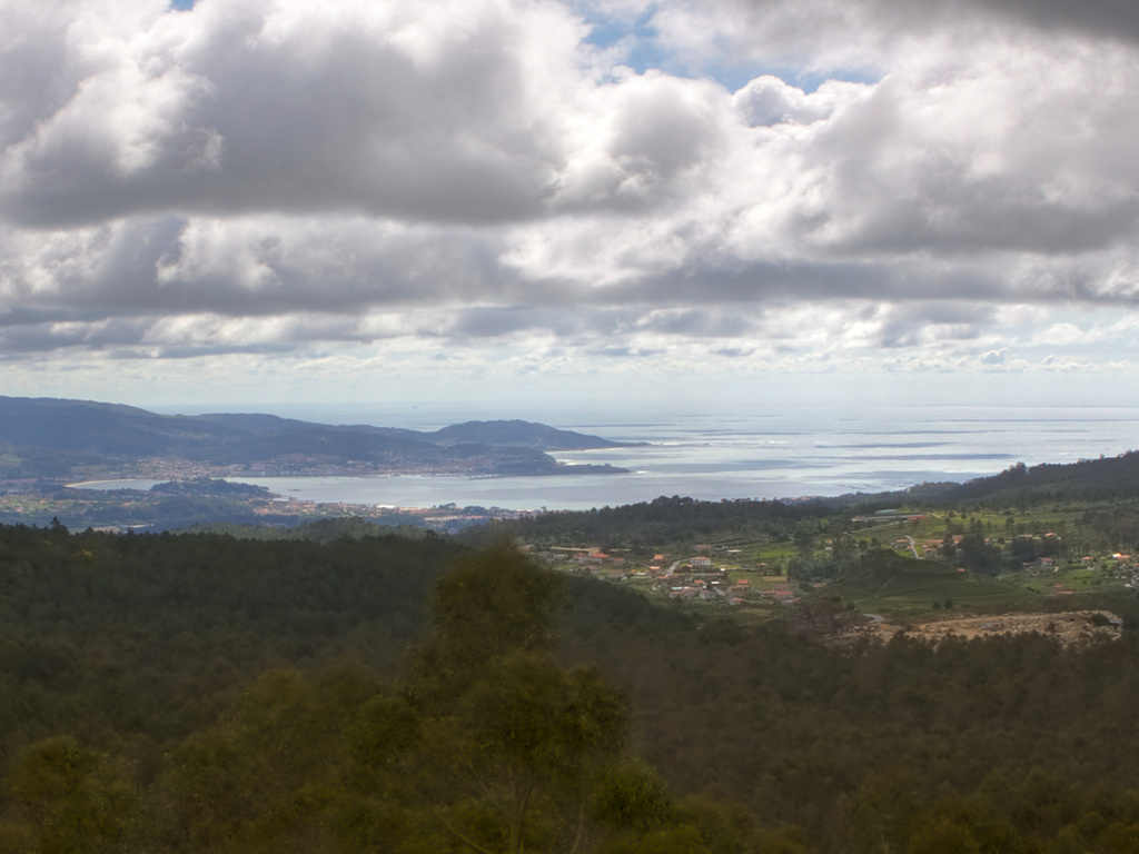 Aquí teneis una vista panorámica improvisada de la Ría de Baiona y la Ría de Vigo desde el Monte Cepudo en Valladares (Vigo).