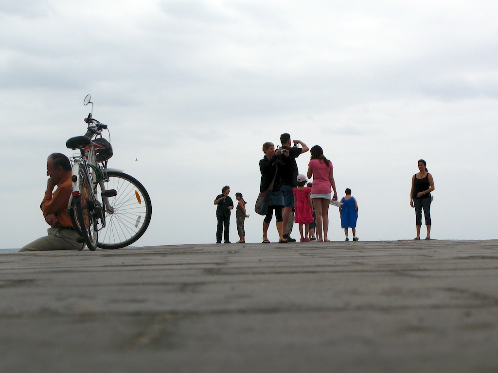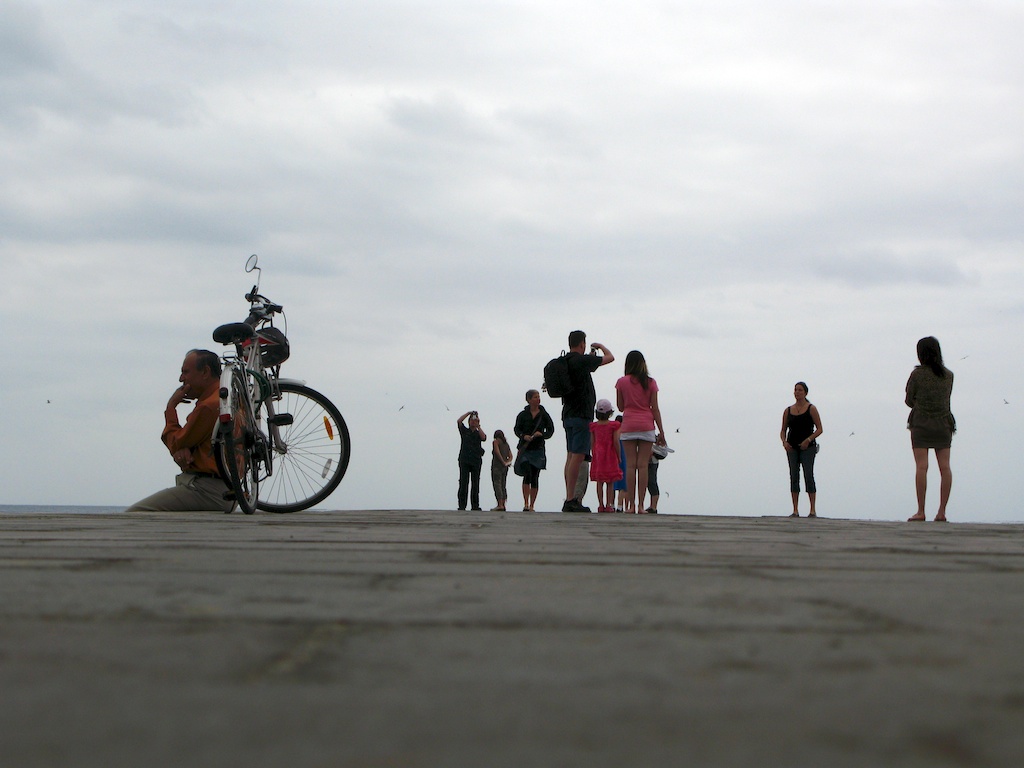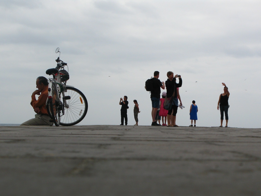 Pues lo normal en estos casos es lo que hacen estos turistas en el muelle: contemplar el horizonte, una foto inolvidable con la familia, intentar suicidarse o meditar frente al mar junto a tu bibicleta.