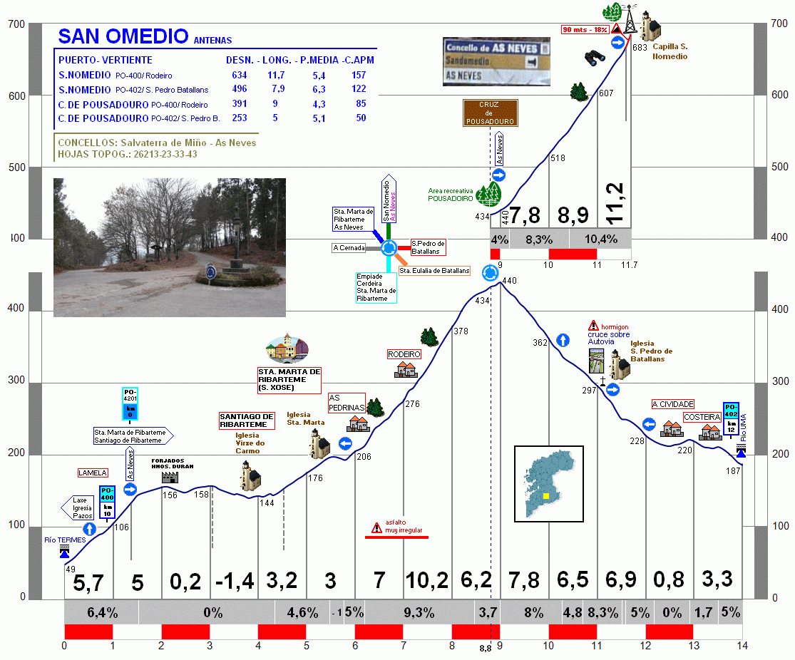 Tito me guió por carreteras de bosque hasta este alto de San Domedio (también San nomedio, San Omedio o San Mamede), puerto de etapas ciclistas y coronado por una ermita, destino de una de las más concurridas romerías del sur de Pontevedra.