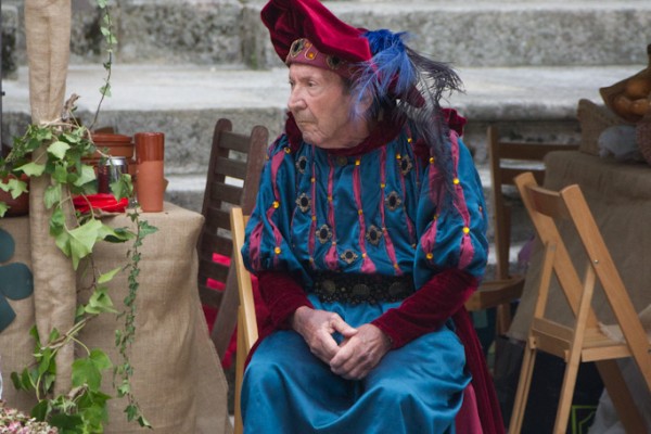 me llamo ISABEL soy la esposa del señor mayor que está sentado en una silla de madera.con un gran sombrero, granate y dos plumas, el traje es granate y azul bordado con piedras negras y de colores, lleva las zapatillas color granate, a juego con el traje,nos encanta la foto,además tambien fotografió a dos de mis amigas una con traje rosa y malva, y otra con traje granate y gris bordado en cristal, están de perfíl, medio cuerpo.YO tengo un grupo de medievales, se llama»DEL MEDIEVO» somos de 35 a 45 personas,desde hace tres años estamos en la plaza de SANTA MARIA,en las escalinatas de la rectoral.yo diseño y confecciono los trajes.y se los dejo a amigos y familia.GRACIAS POR FIJARSE EN MIS TRAJES, Y MÁS VIENDO QUE UD SE DEDICA MAS A LA CETRERIA, PARA NOSOTROS ES UNA GRAN SATISFACIÓN.ISABEL.
