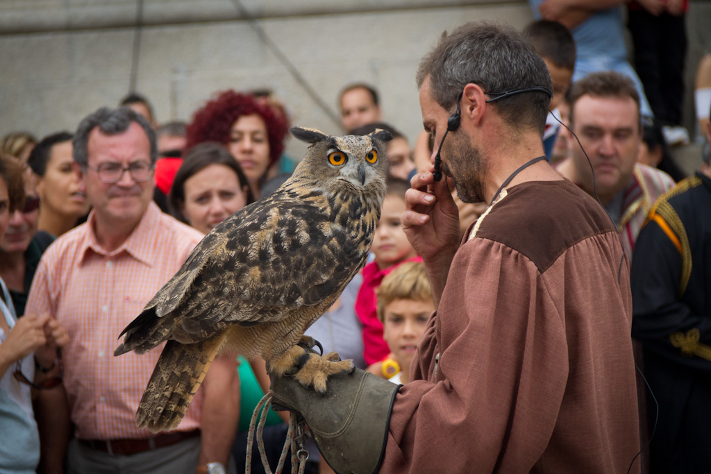 Por supuesto, lo que más me sigue gustando de la Feira Franca es la exhibición de cetrería a cargo de Falcóns Galicia. Creo que se nota bastante, por el número de fotos dedicadas a ello. Este año de nuevo el águila de harris fue el ave que más trabajó, haciendo las delicias de todos los que asistimos.